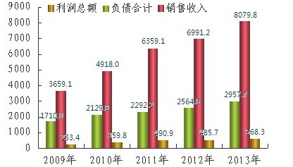 圖:2009年~2013年我國規(guī)模以上泵、閥門、壓縮機(jī)及類似機(jī)械制造行業(yè)盈利情況